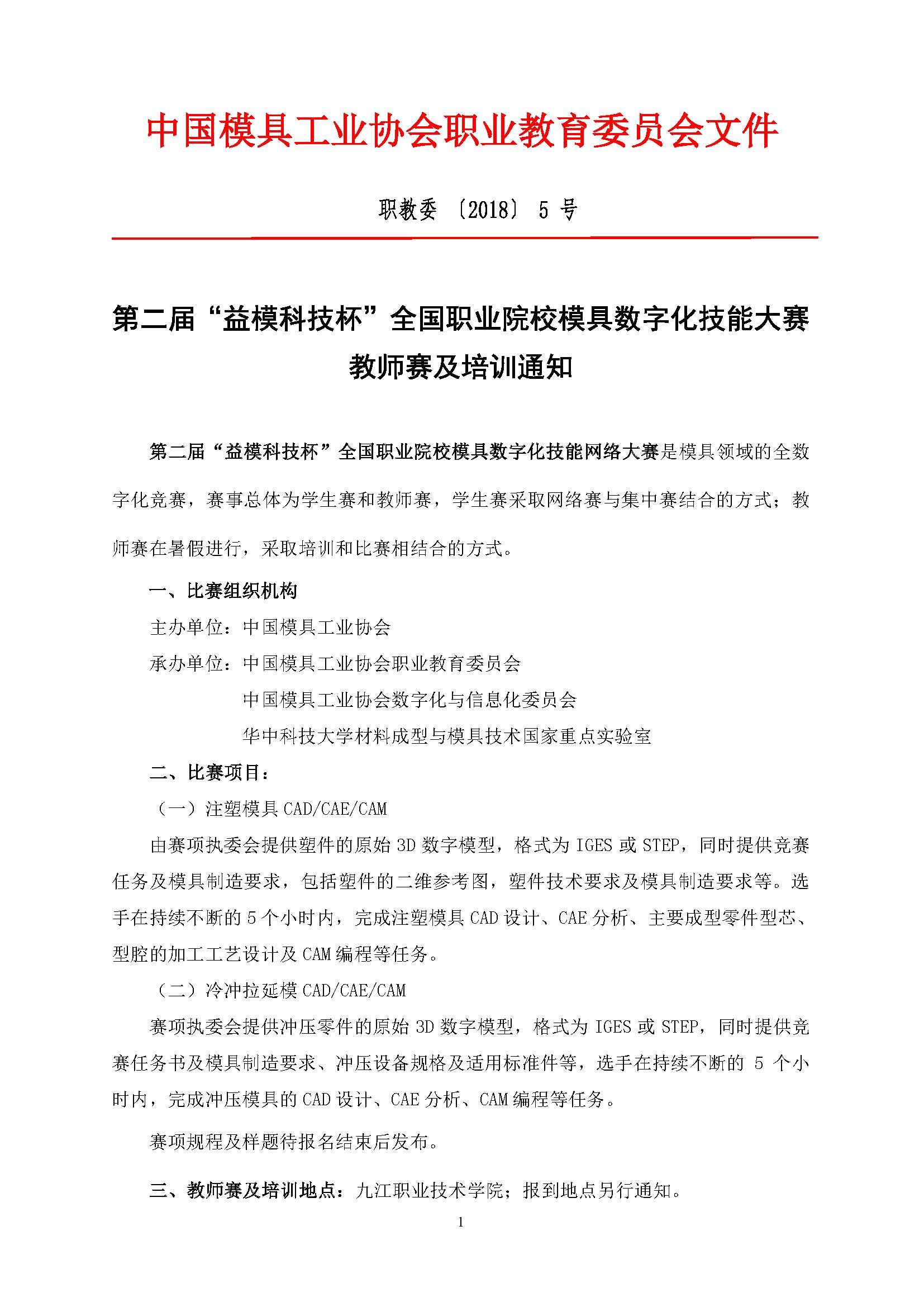 第二屆“益??萍急比珖殬I院校模具數字化技能大賽教師賽及培訓通知