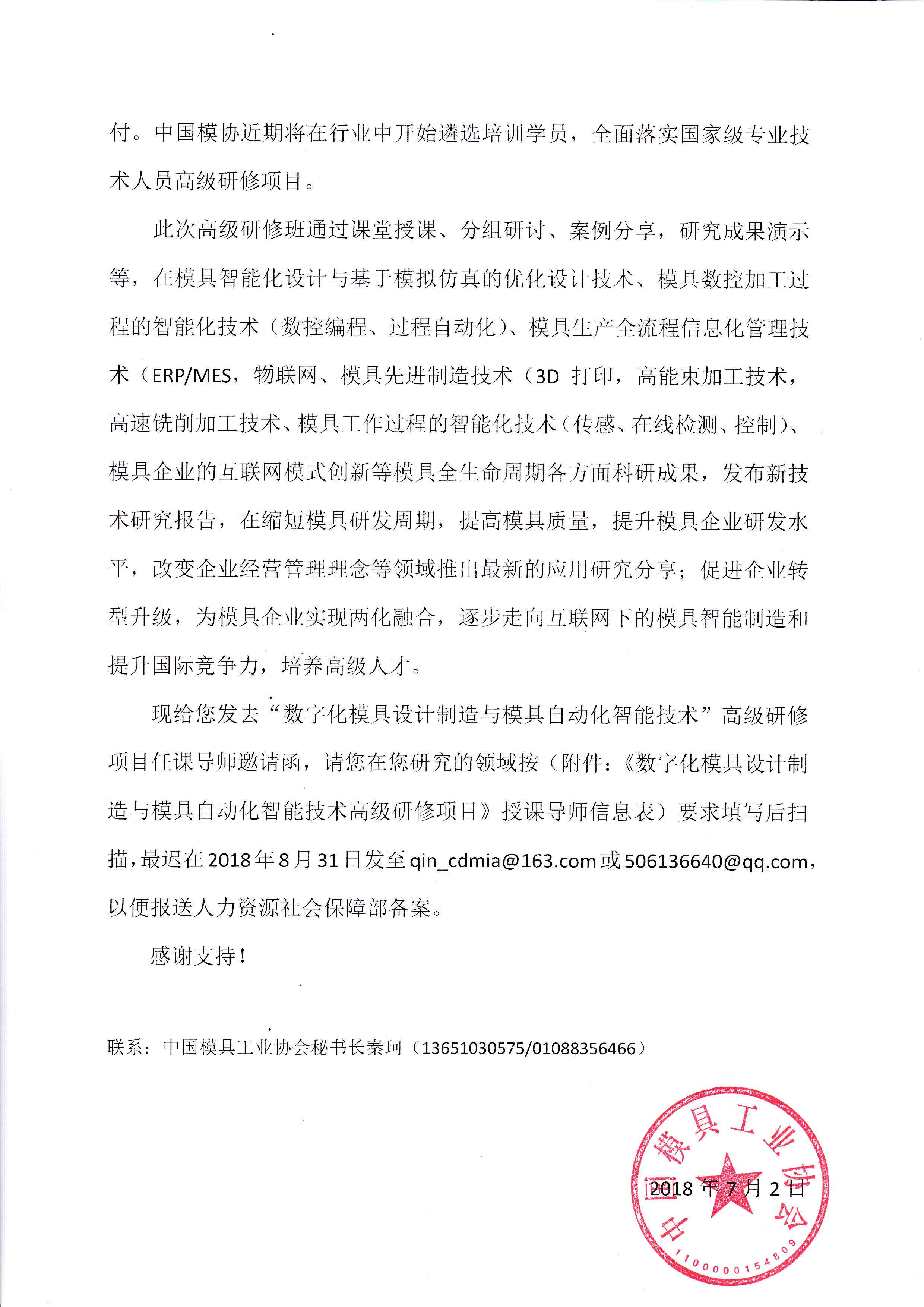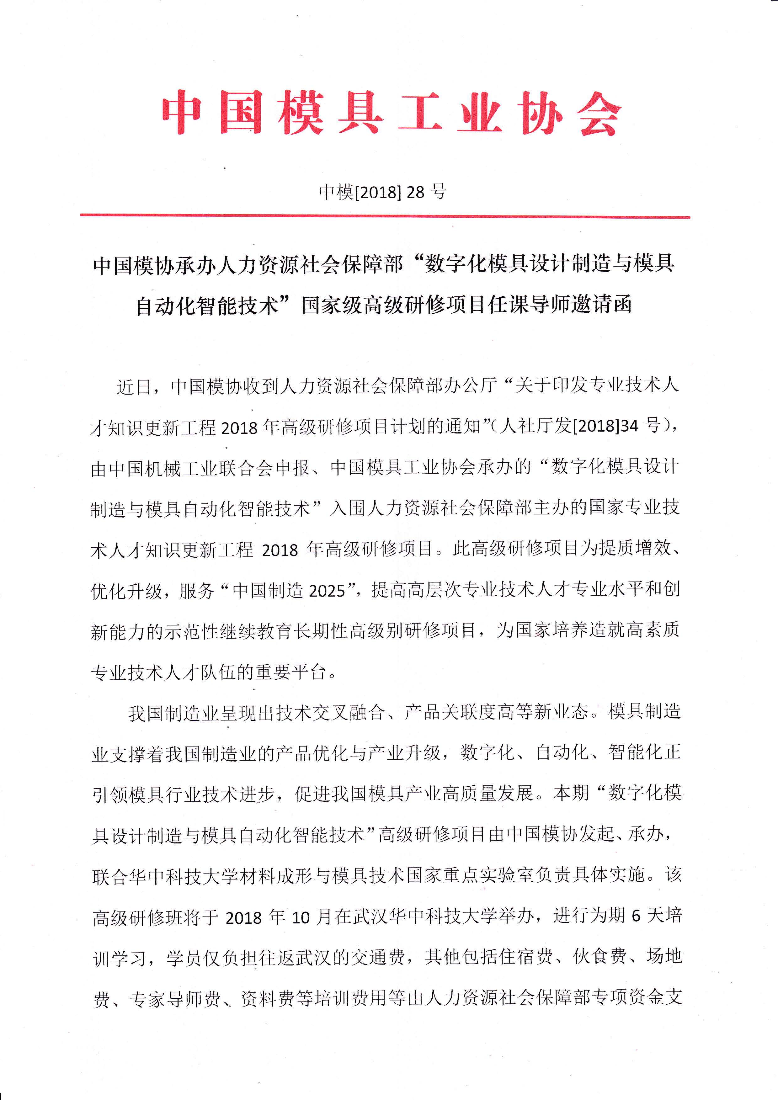 中國模協承辦人力資源社會保障部高級研修項目任課導師邀請函