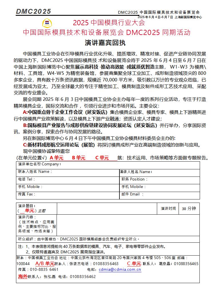 DMC2025會議演講題目-演講嘉賓回執表(1).docx